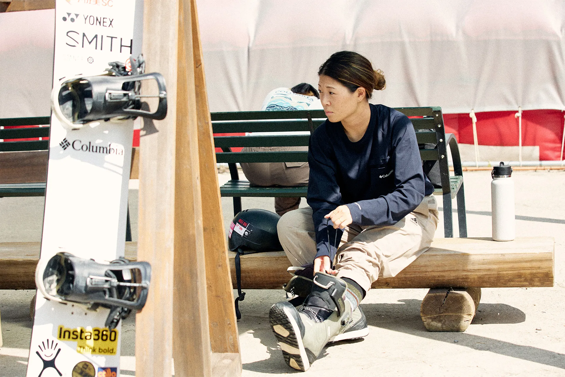 1つのことに無心になって取り組んで、スノーボードのことを完全に忘れる時間が心地いいし、完全にOFFになるからONへの切り替えもスムーズなんです。まだまだ初心者レベルですが、少しずつ上達していきたいですね。
