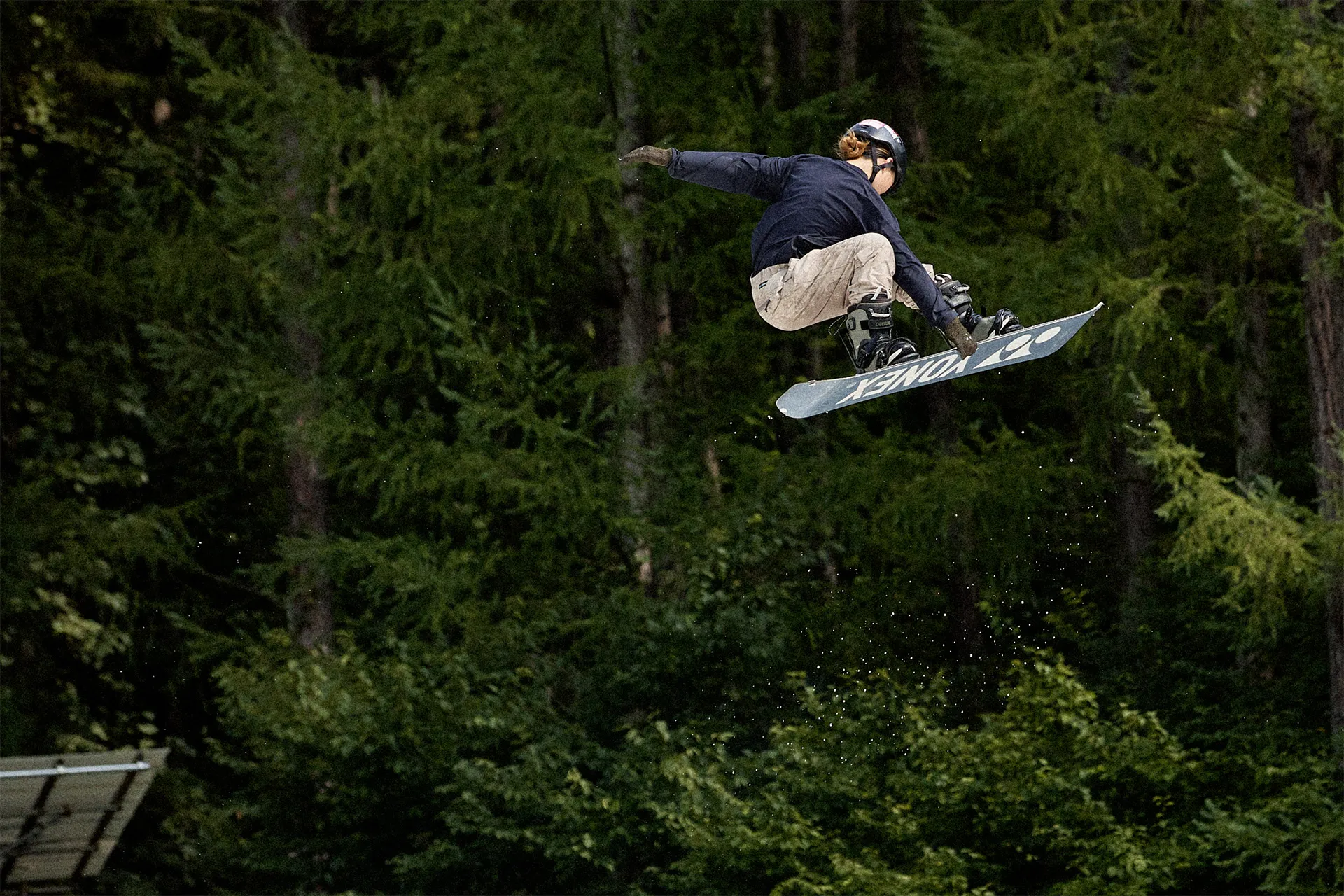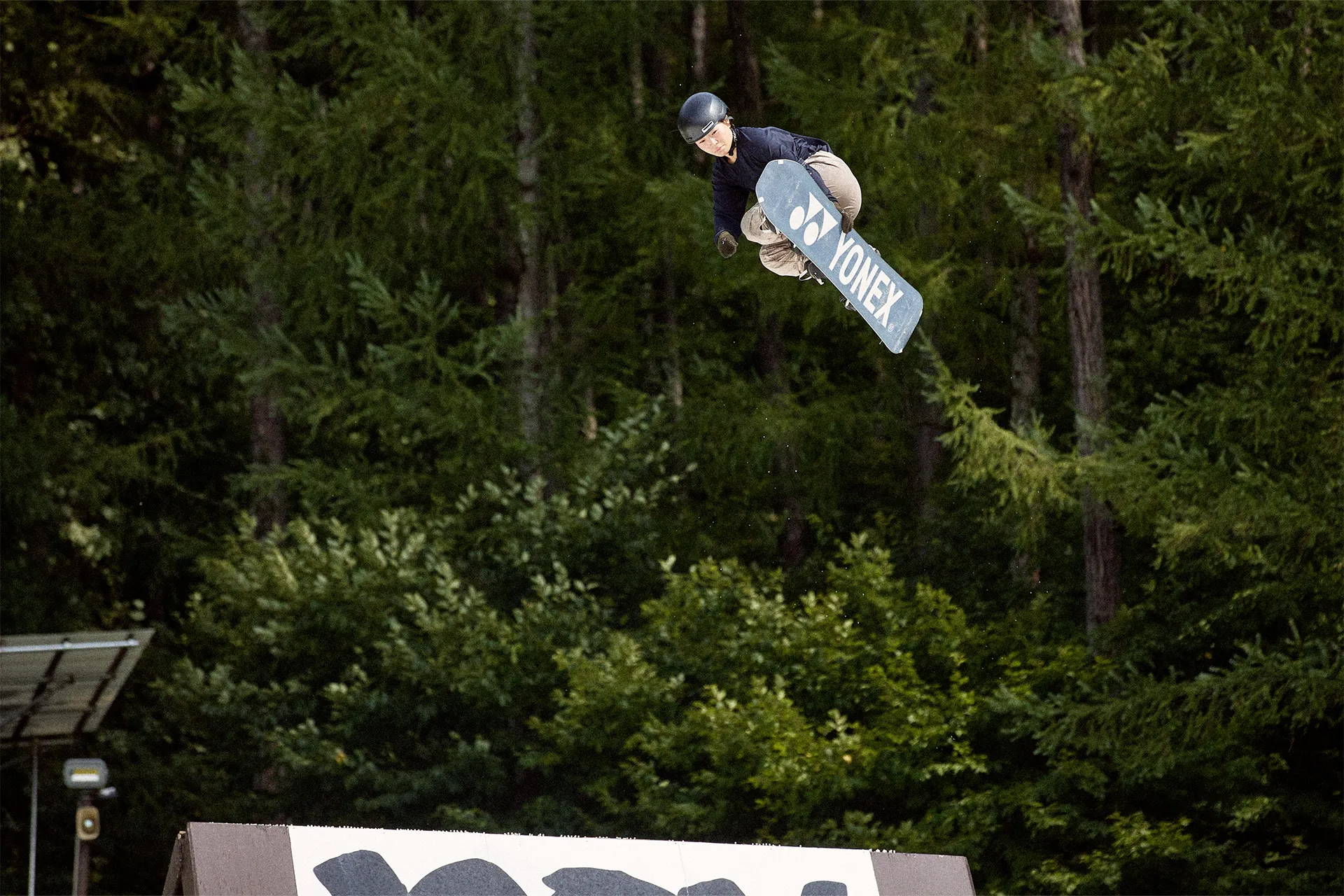 普段使っている大きなジャンプ台では、回転数を上げるぶん、ジャンプの抜けが甘くなりがちです。そこで今日は、あえて低い台を使い、抜けの感覚を確認しました。トリックの完成度を高めて、大会本番での実践につなげたいと考えています。