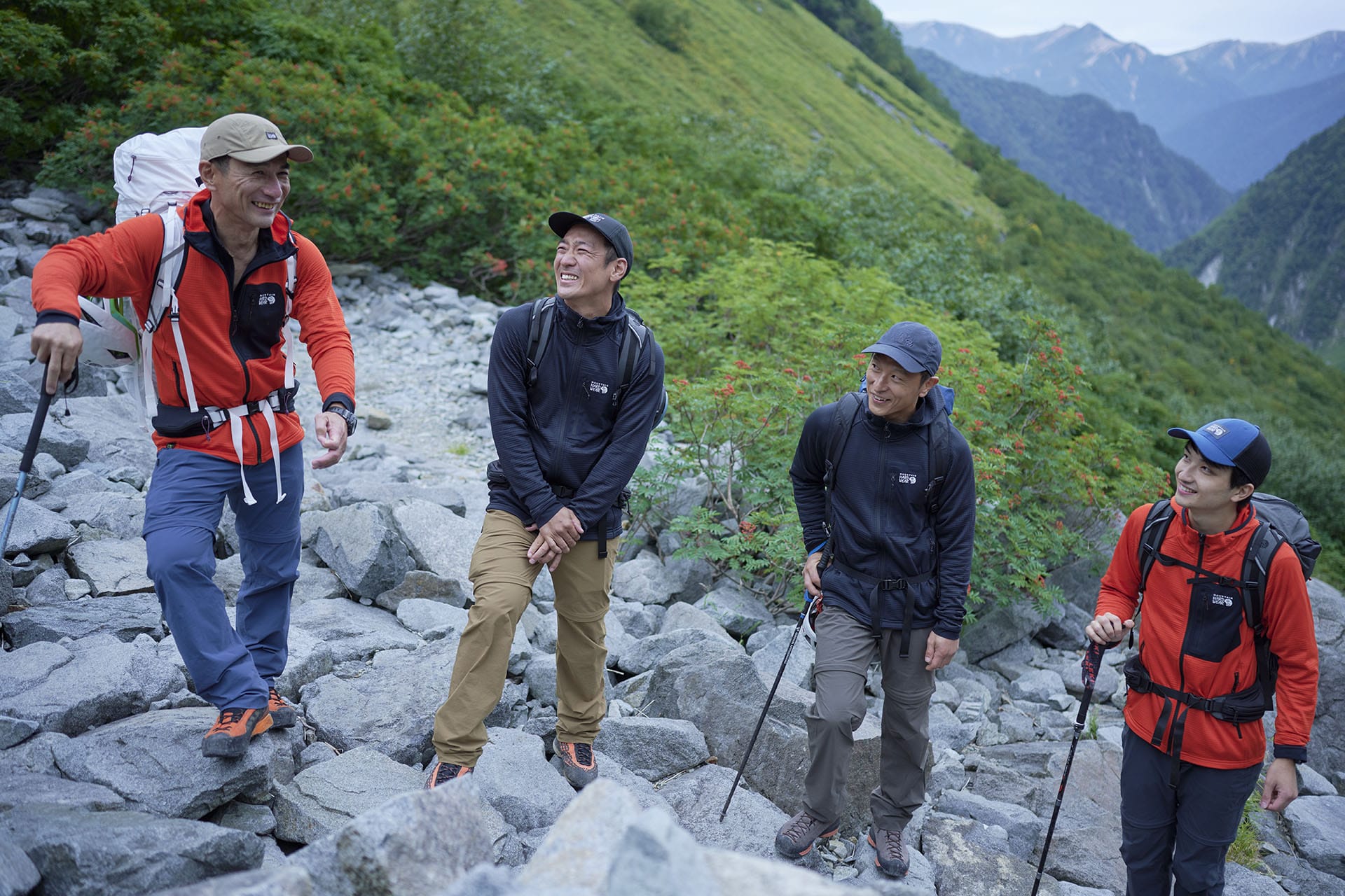 長門敬明と伊藤伴にとっても、登山は「原点」だ。長門はアルパインからビッグウォールまで国内外の壁に挑み続けるクライマー。2011年には中国・ダッドメイン東壁(6,380m)に新ルートを拓き、ピオレドール・アジアの「ゴールデンブーツ」賞を受賞した。 「和気あいあい楽しむ登山は久しぶり。登山を始めた大学生のころは右も左もわからなくて、それでもただ山に来ることがうれしかった。今日も大きな荷物を背負ったワンゲル部の子たちがいたけど、思い出すよね」