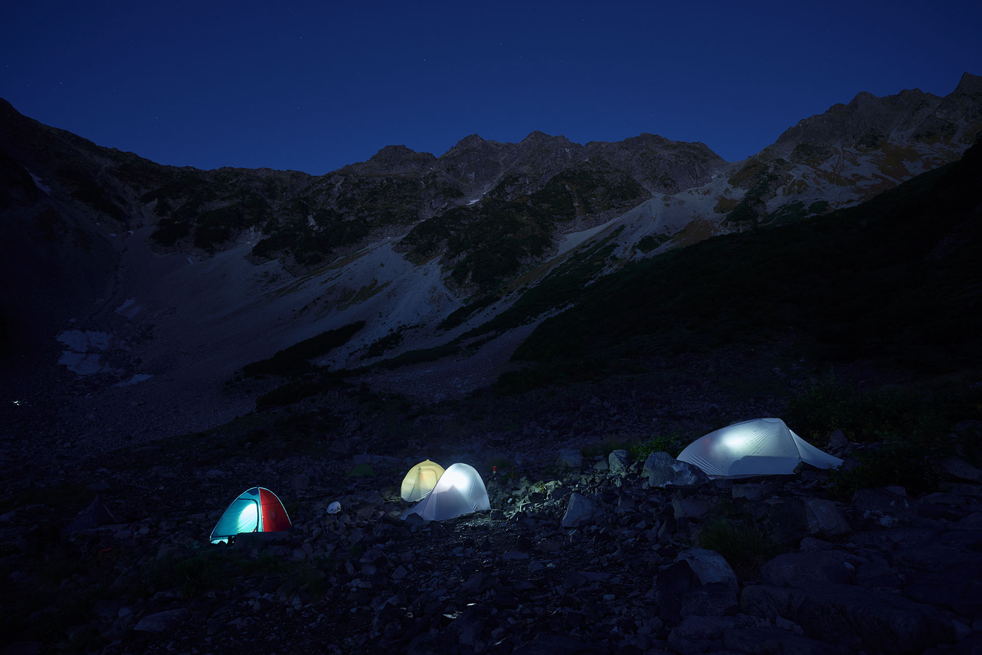 穂高連峰の屏風のような山並みが、だんだんと夕闇に紛れていく。穂高を望む涸沢カールのテント場で、マウンテンハードウェアアスリート4人が静かに缶ビールを傾け、焼き立てのベーコンにはしを伸ばしていた。話題になるのは登山のこと、かつて取りついた岩壁のこと、スキーやスノーボードで挑んだラインのこと。 ここ穂高は4人にとって何度も通い詰めたフィールドであり、今後の挑戦の場でもある。4人はみな、第一線で活躍するアウトドアアスリートだ。ただし、主戦場はそれぞれ異なる。