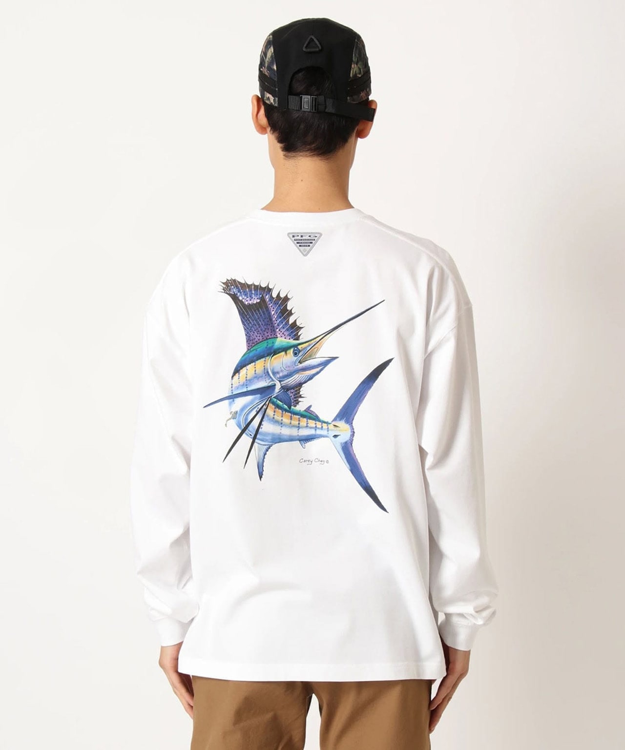 アングラーたちから支持されるコロンビアのフィッシングライン“PFG(Performance Fishing Gear)”からは、マリンアーティスト・キャリーチェンが描く“バショウカジキ”のグラフィックが美しいロングスリーブTシャツがおすすめ! コットンとポリエステルを混紡したことで肌触りの良さと速乾性のどちらも併せ持ち、さらに日本人の体型&好みに合うように、素材やフィット感が調整されている点もGOOD。