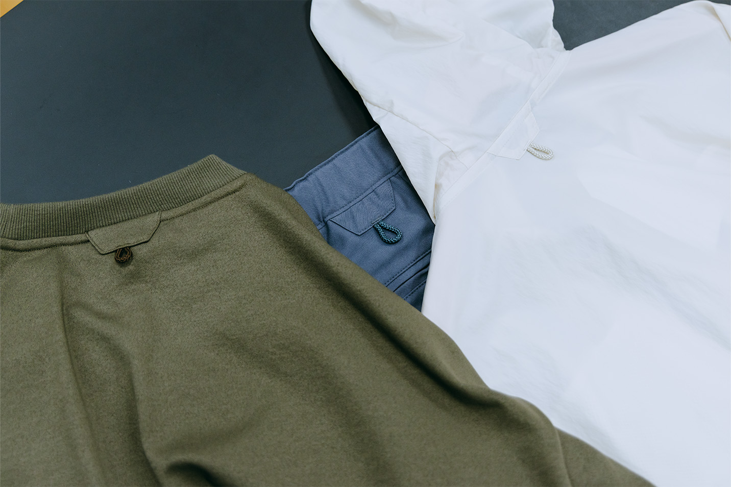 ただ、試作を重ねるなかで「もともと通気性の良いスウェット素材にベンチレーションは本当に必要なのか?」という疑問が出てきて。機能を持たせることで、かえってスウェット本来の着心地を損なってしまうのであれば、潔くなくしてしまおうと考えたんです。