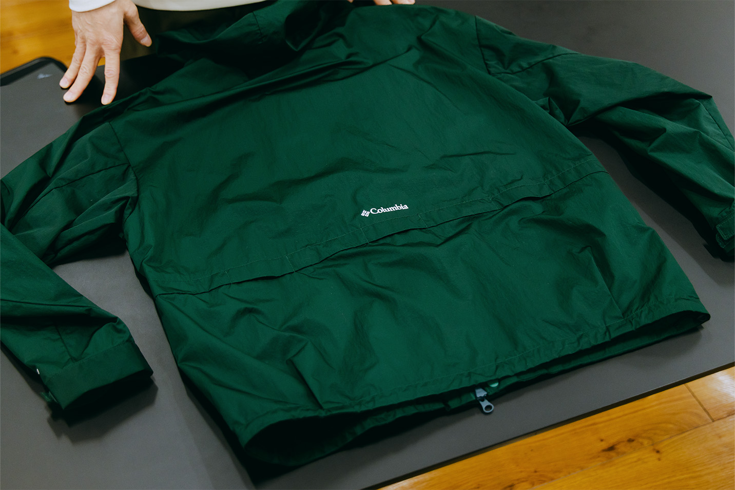立花:象徴的なアイテムとして、まず挙げたいのがジャケットですね。一見するとシンプルなウィンドジャケットですが、裏面に加工を施して耐水圧を高めているため、ちょっとした雨であれば傘なしで対応できます。