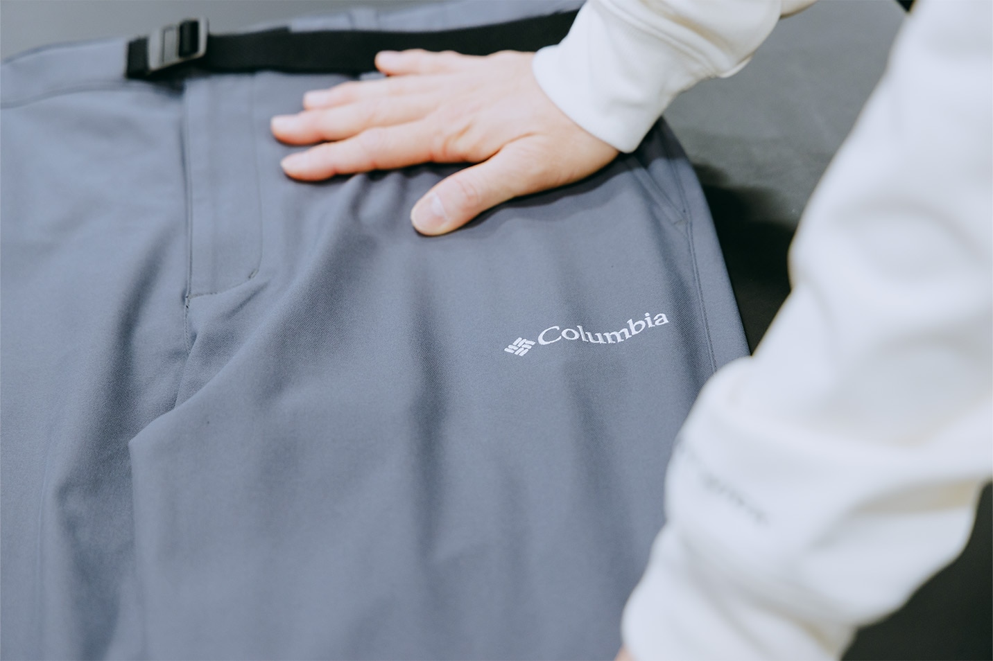 次に、パンツについて。ストレッチが効いているのに、生地がしっかりしていますね。