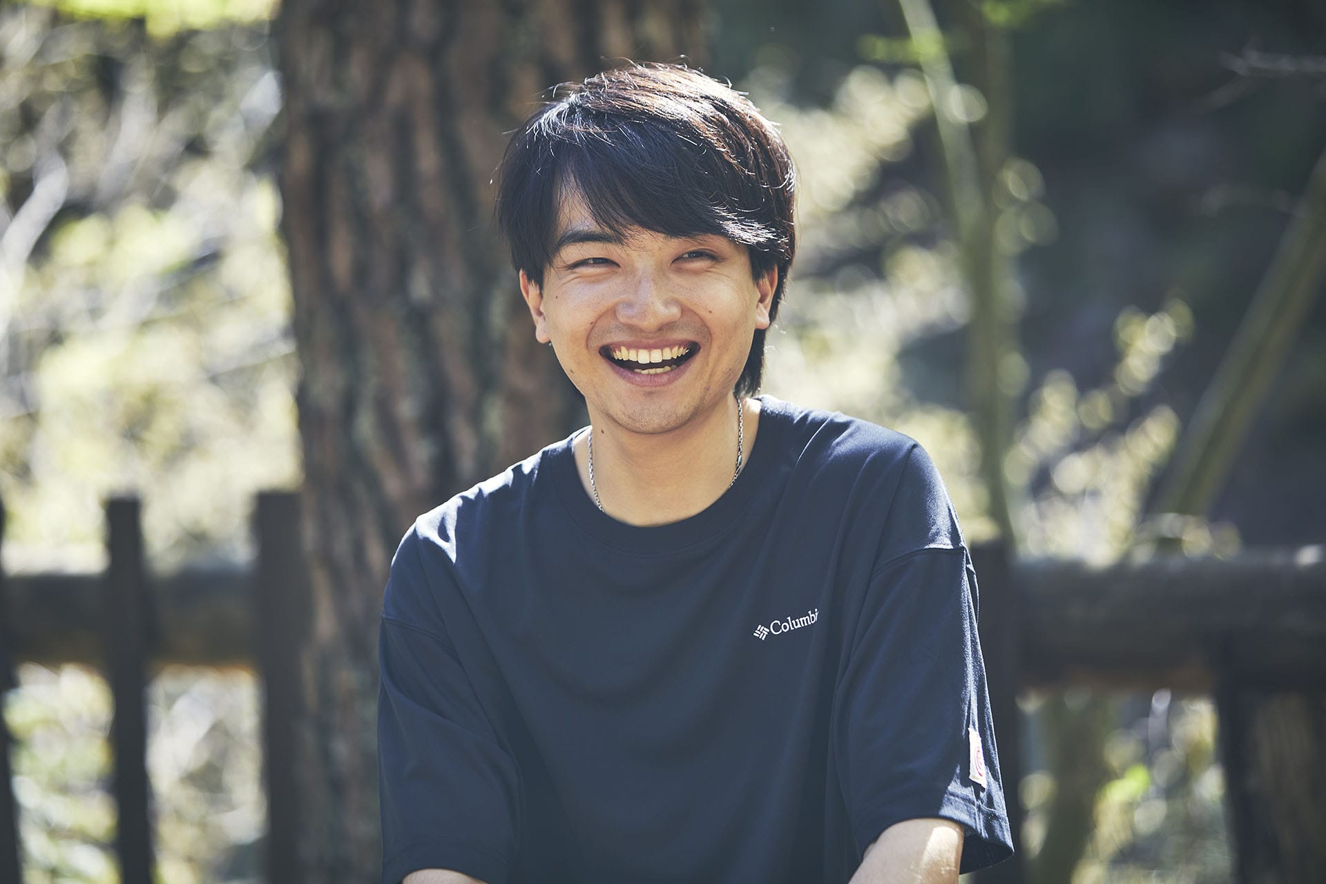 登山後、ベースキャンプ場に到着した伊藤さんはカップヌードルとコロンビアのコラボアイテムにお着替え。着用してみた感想や、コロンビアというブランドやウェアに対する印象などを聞きました。