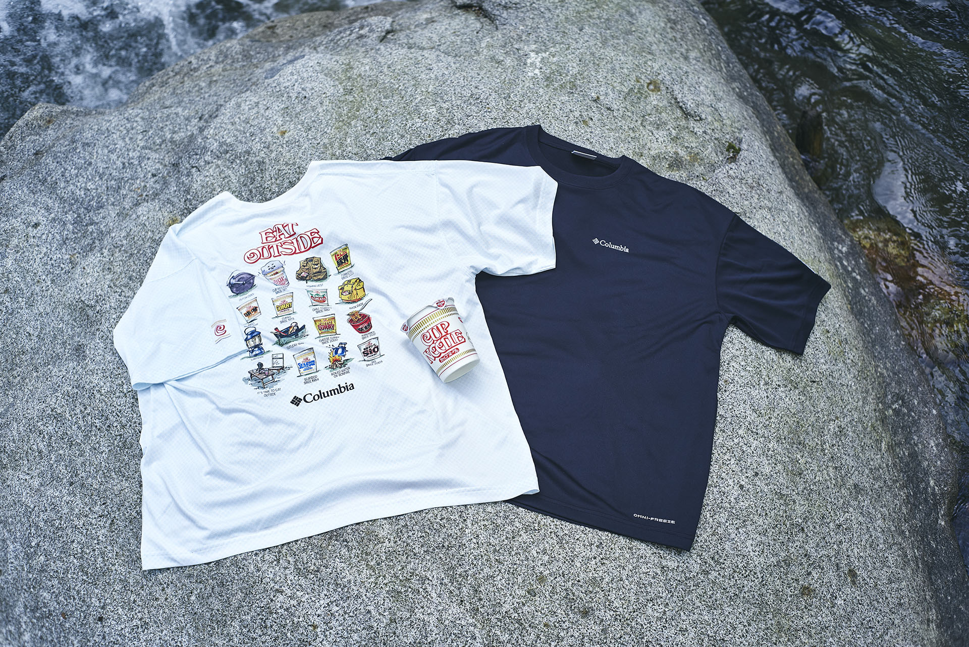伊藤さん:まずコロンビアのウェアは、デザイン性がほかのアウトドアメーカーとは違うなという印象があります。フェスなどのライトアウトドアでも映えるカラーやデザインのウェアをたくさんラインナップしているので、これからアウトドアを楽しみたいっていう人にとって手が出しやすいですし、街でも着やすいウェアが多いですよね。コラボアイテムに関しては、日清さんは元々ユニークなCMとかが多いし、コロンビアもけっこう派手なイメージもあるので、それをミックスした感じでなかなかパンチのあるデザインですね。