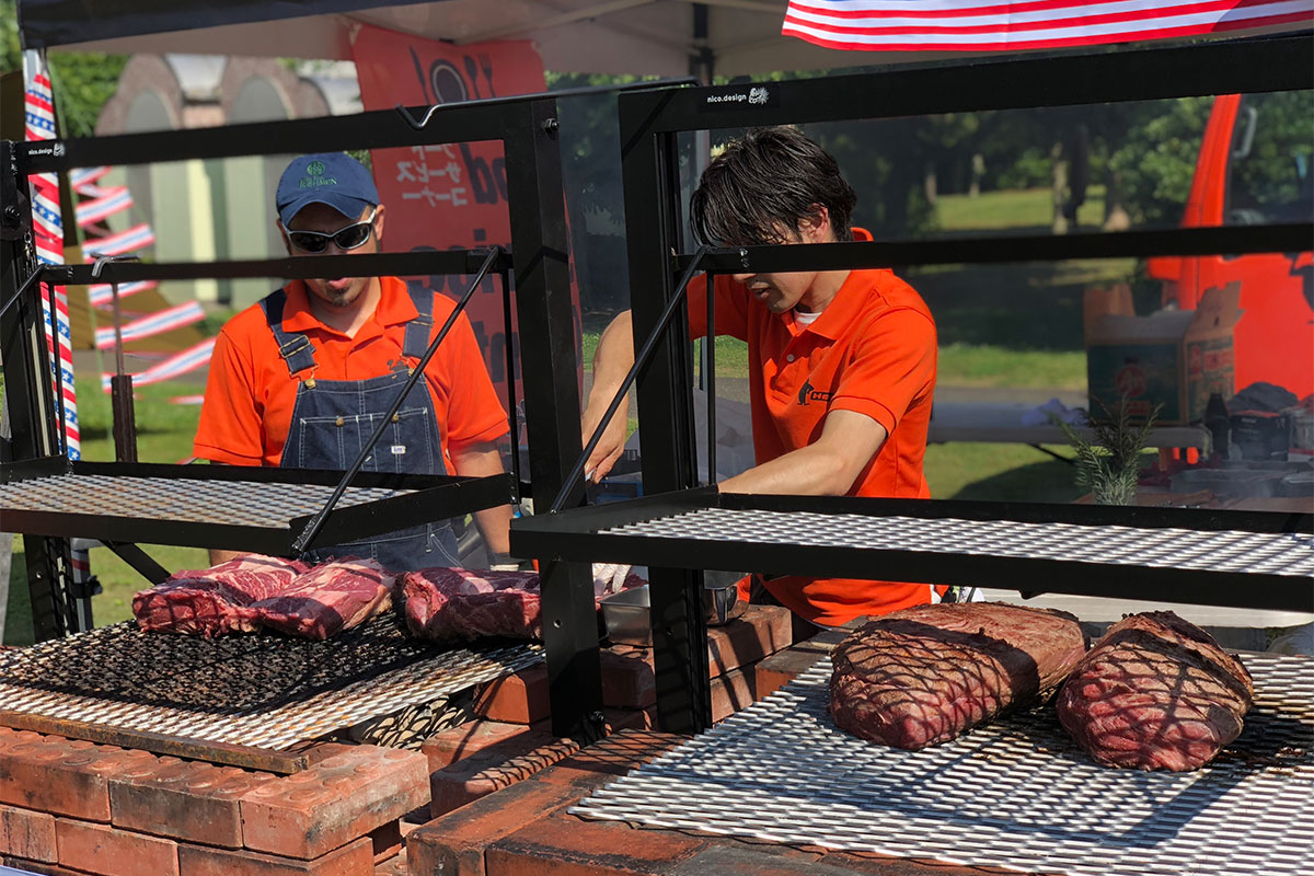 キャンベルスープ、アメリカンポークを用いた本格ステーキ、更にブース前の焚火器材を使って炙って楽しめるソーセージやマシュマロなどのメニューを予定。